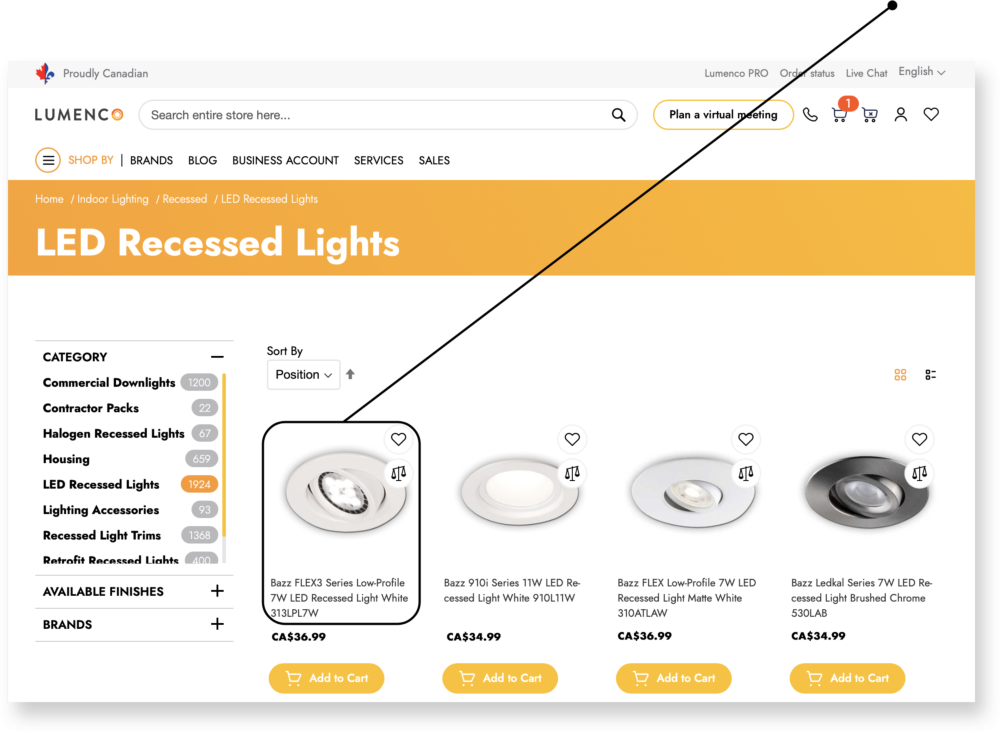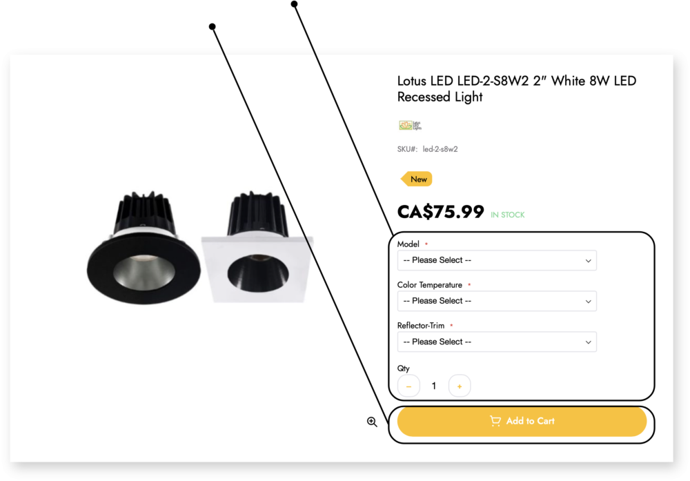 To the right of the product image, select the specific options you require, adjust the quantity necessary and click on the icon "Add to cart”.