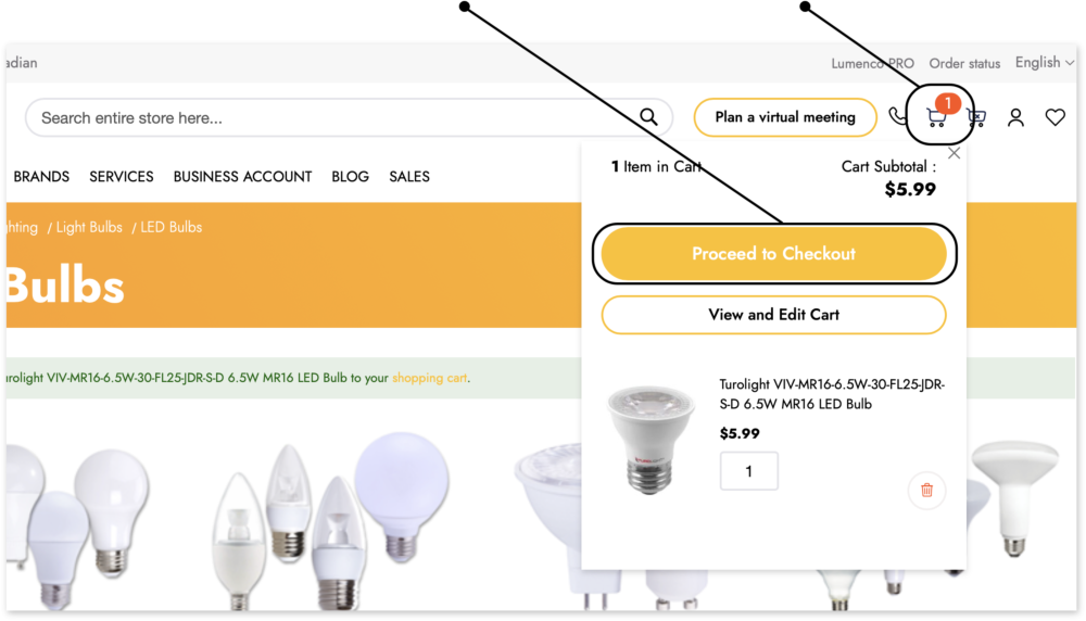 At any time, you can check the product added to your shopping cart by clicking on " My Cart " in the upper right corner. At the end of you purchases, click on the icon " Proceed to checkout ".