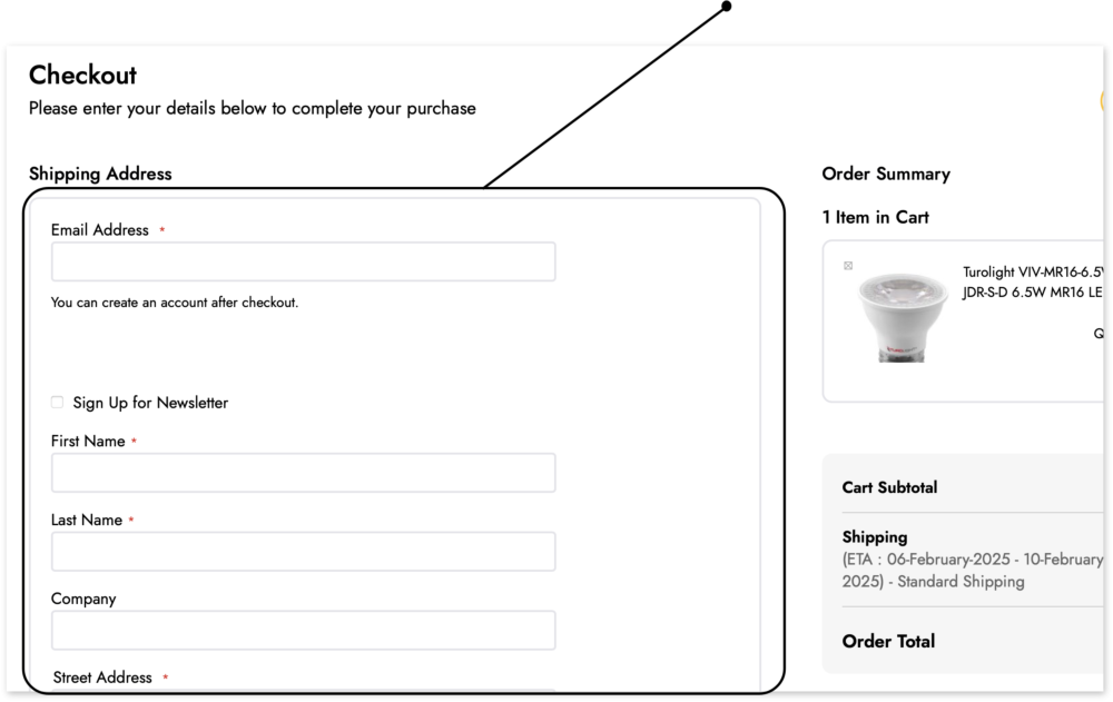 Please fill out the shipping information. Note: You can create an account after the checkout.